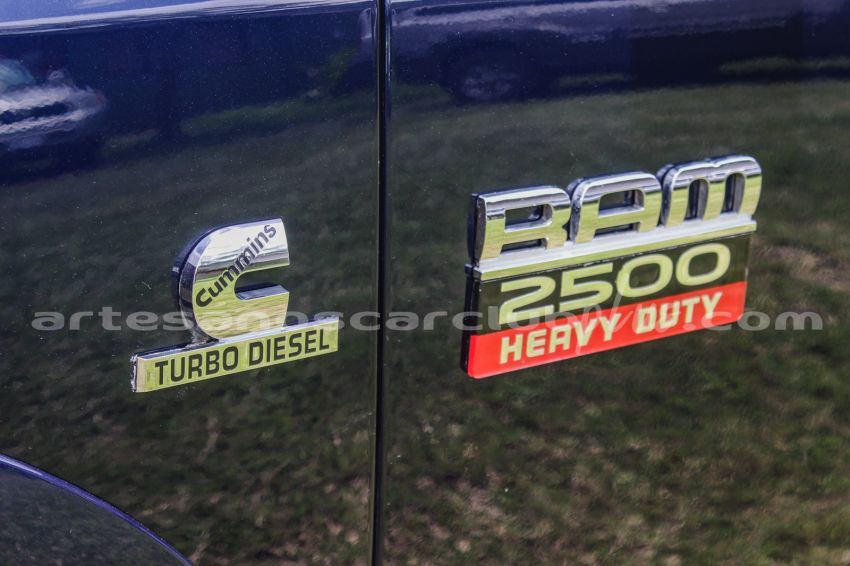 • Emblema exterior de compuerta de caja de carga negra con emblema RAM de gran formato.