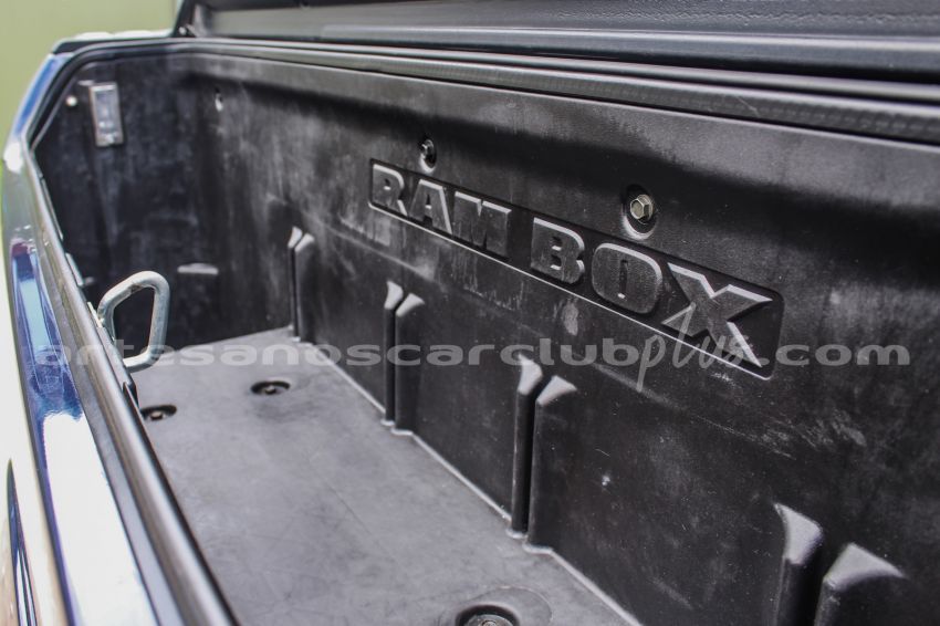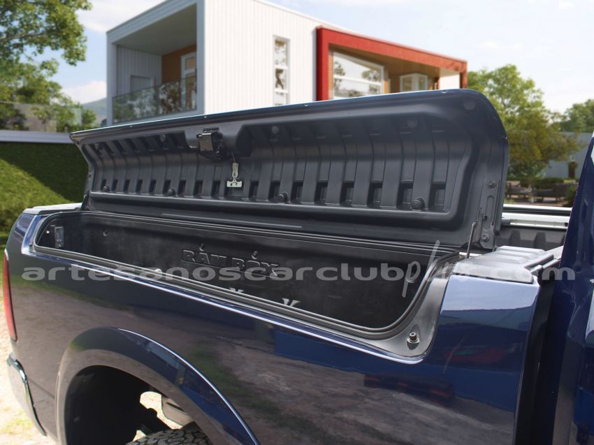 • Emblema exterior de compuerta de caja de carga negra con emblema RAM de gran formato.